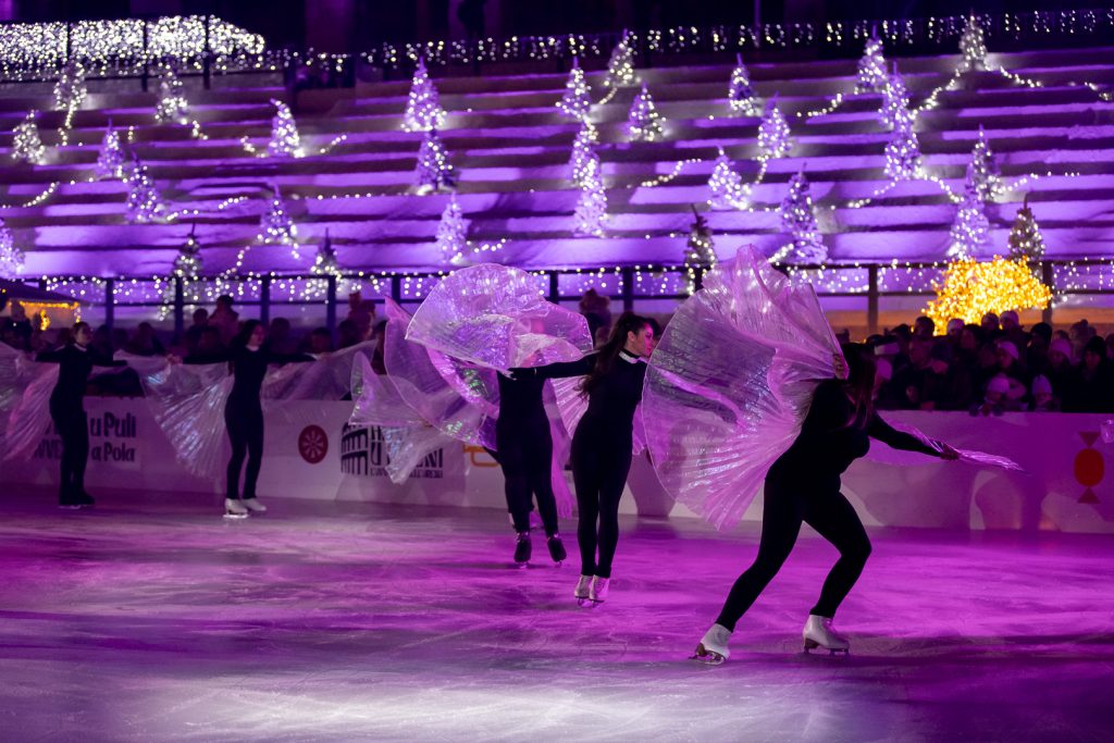 U petak, 5. prosinca, slijedi svečano otvorenje klizališta u Areni uz klizački klub „Medo“ iz Zagreba i glazbeni nastup mlade pulske zvijezde Zoe Šestan u 18:00 sati. Ove godine klub s ponosom predstavlja svoju novu predstavu „4 planeta” – bajku na ledu koja će vas odvesti na čarobno putovanje kroz svemir mašte. Publika će otputovati na četiri različita planeta, svaki poseban i bajkovit gdje će oživjeti likovi iz omiljenih priča: kauboji, Štrumpfovi, Charlie Chaplin, Gita i Hlapić, Čarobnjak iz Oza, Aladin i Jasmina, Djed Mraz i mnogi drugi junaci.